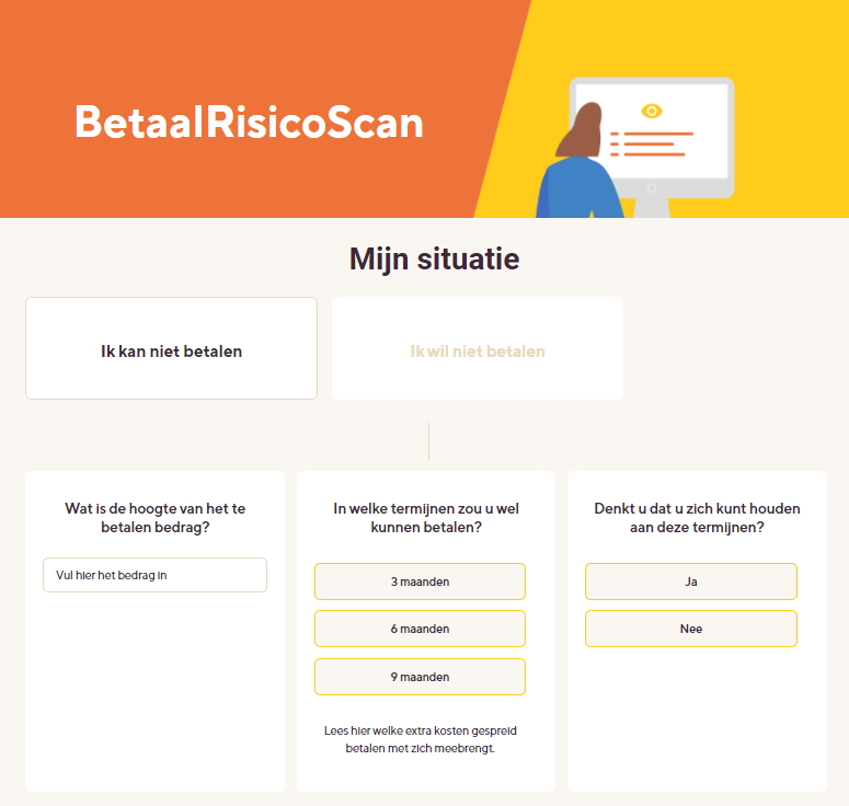 - De BetaalRisico-scan, waarin je als debiteur kunt zien wat je kunt verwachten als je niet kunt of wilt betalen.